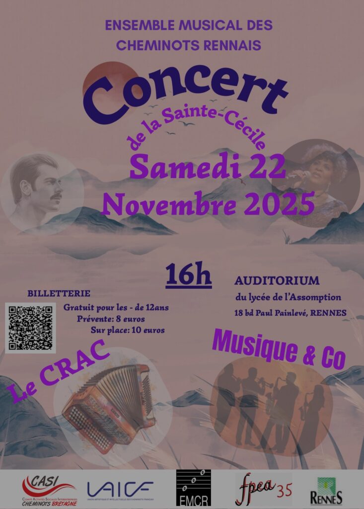Concert de Sainte Cécile 2024 du CRAC et de l’harmonie Musique and co ! Venez nombreux !